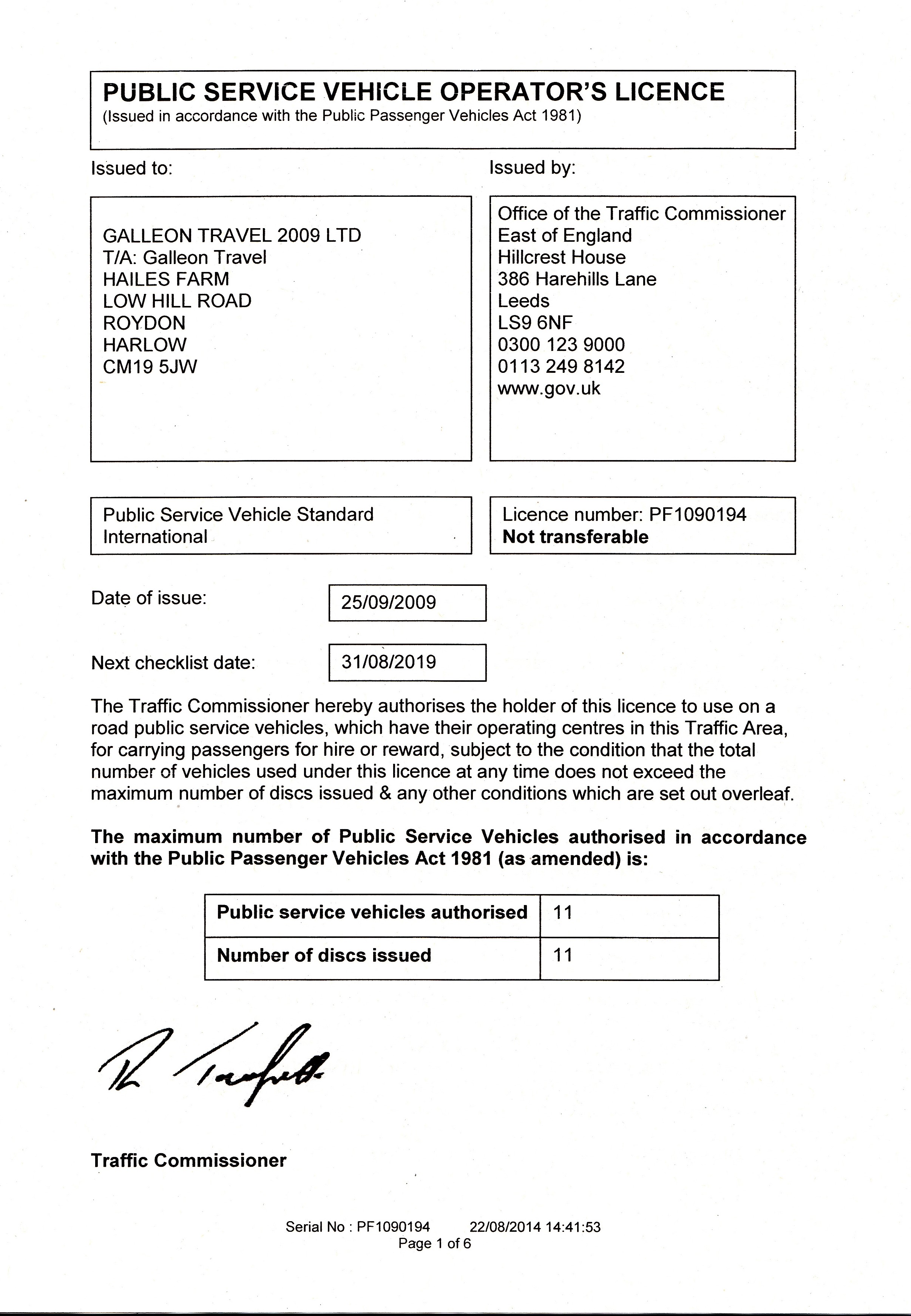 Current Operators Licence